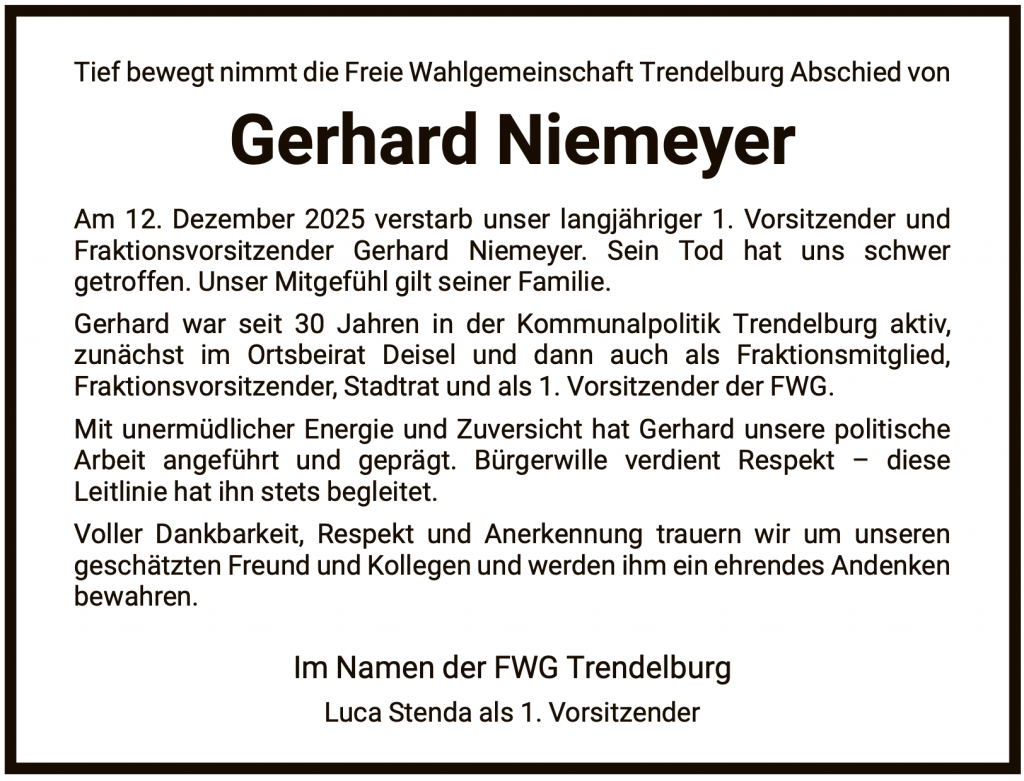 Sein langjähriges Engagement in der Kommunalpolitik und für die FWG für Trendelburg verband er stets mit den Worten: